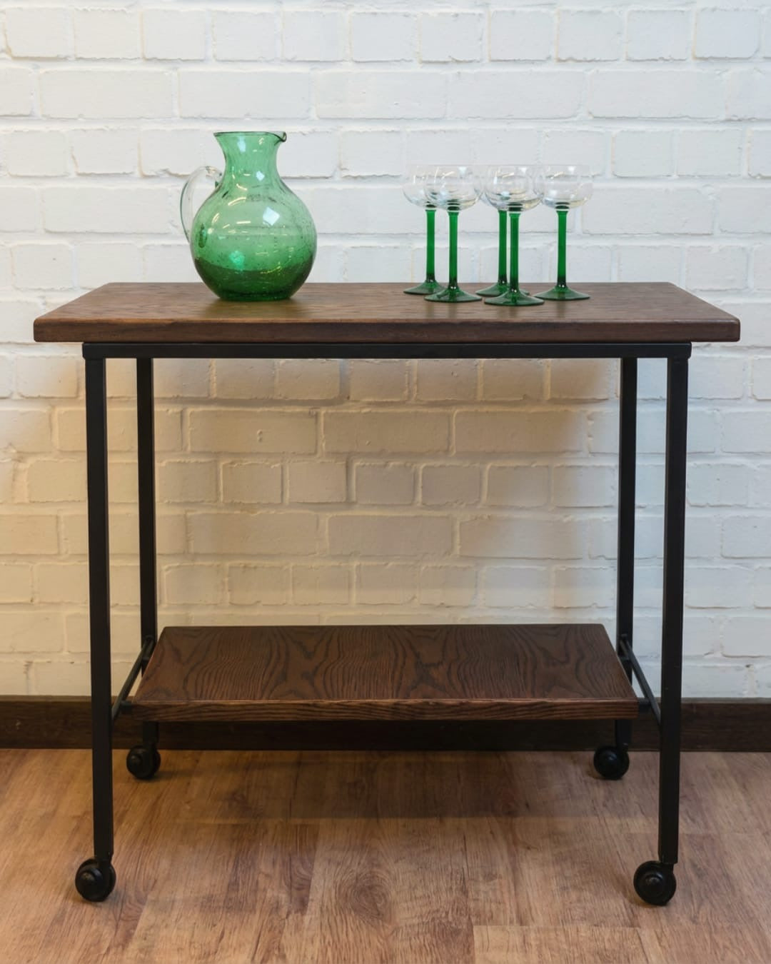 Elle peut être utilisée comme table d’appoint, desserte de bar ou support pour une platine vinyle. La tablette inférieure permet de ranger livres, magazines, disques ou bouteilles.